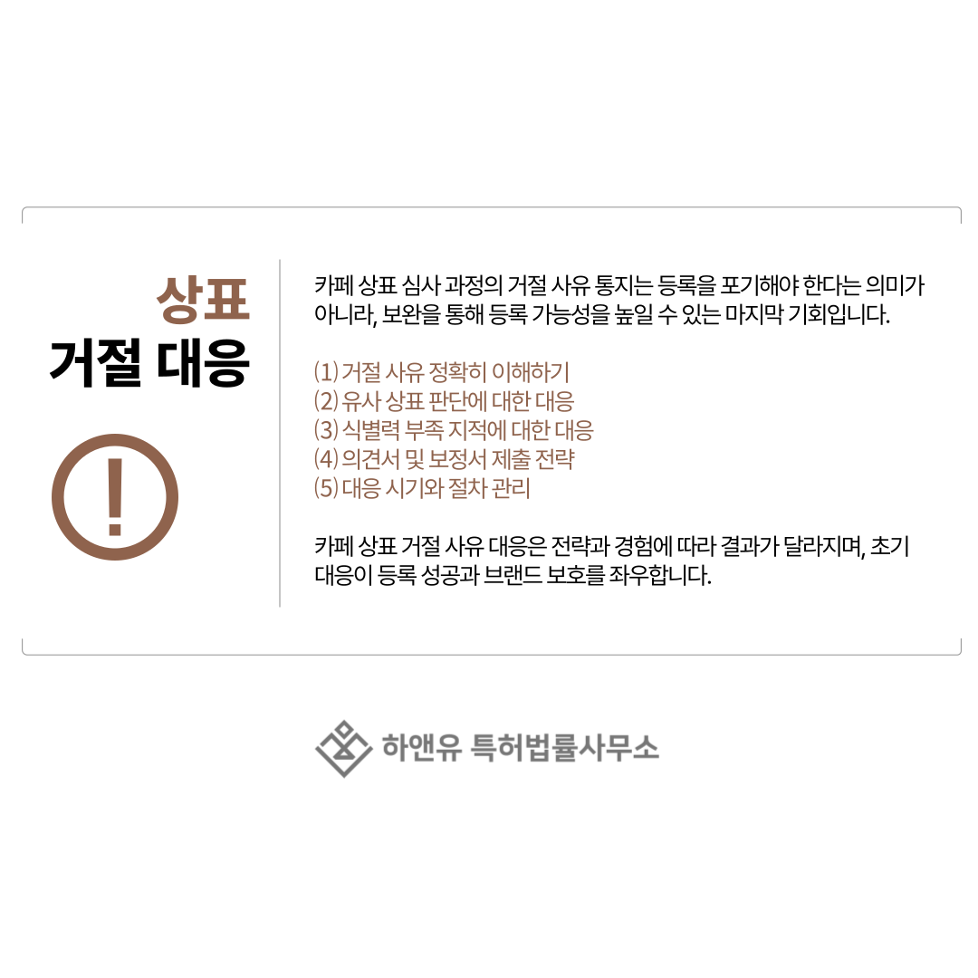 카페 상표 심사 과정에서의 거절 사유 대응은 경험과 전략이 결과를 좌우합니다.