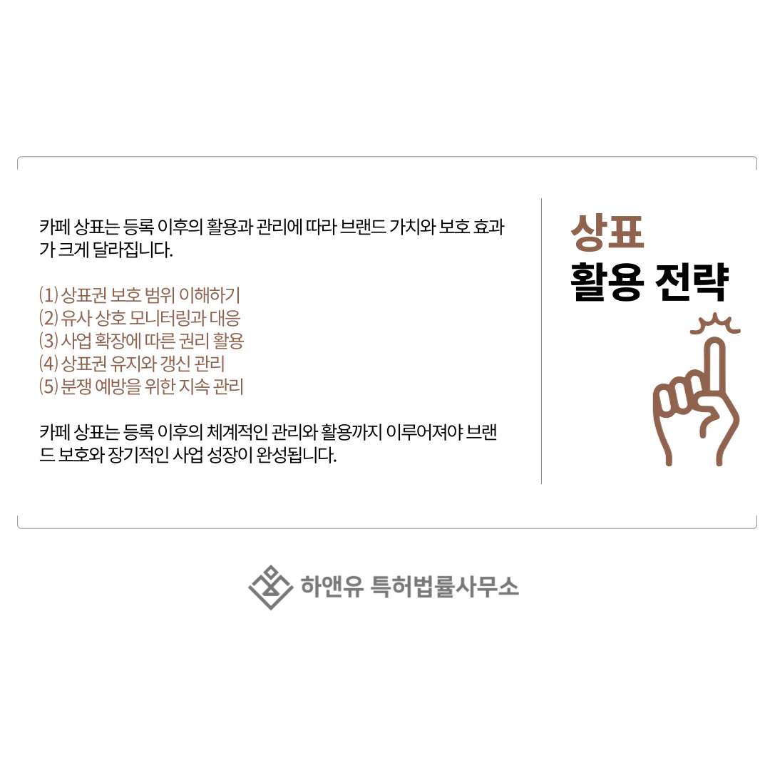 등록 이후까지 고려한 관리가 카페 상표의 가치를 완성합니다.