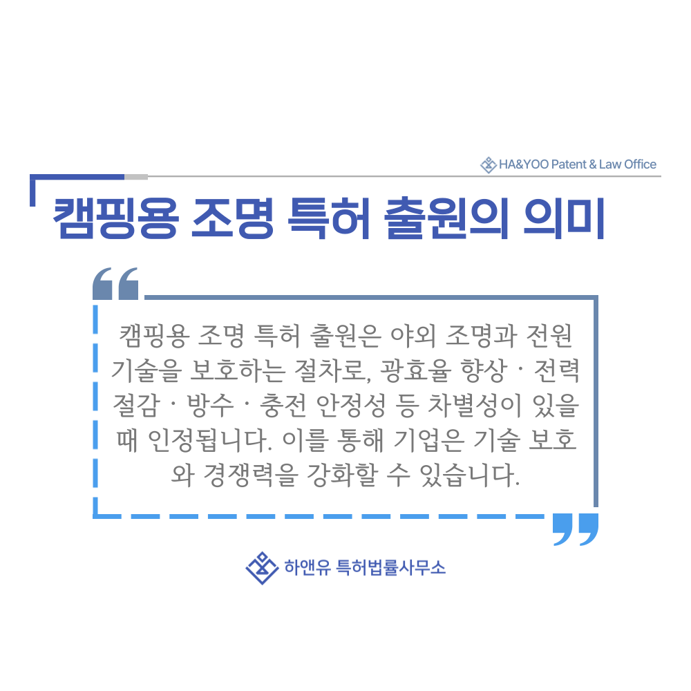 1. 캠핑용 조명, 랜턴, 헤드램프, 스트링라이트, 파워뱅크 특허 출원의 의미