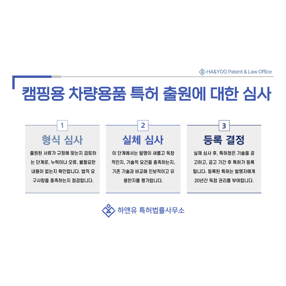 캠핑용 차량용품인 루프박스, 카고랙, 히치 캐리어 특허 출원은 먼저 형식심사부터 진행됩니다.