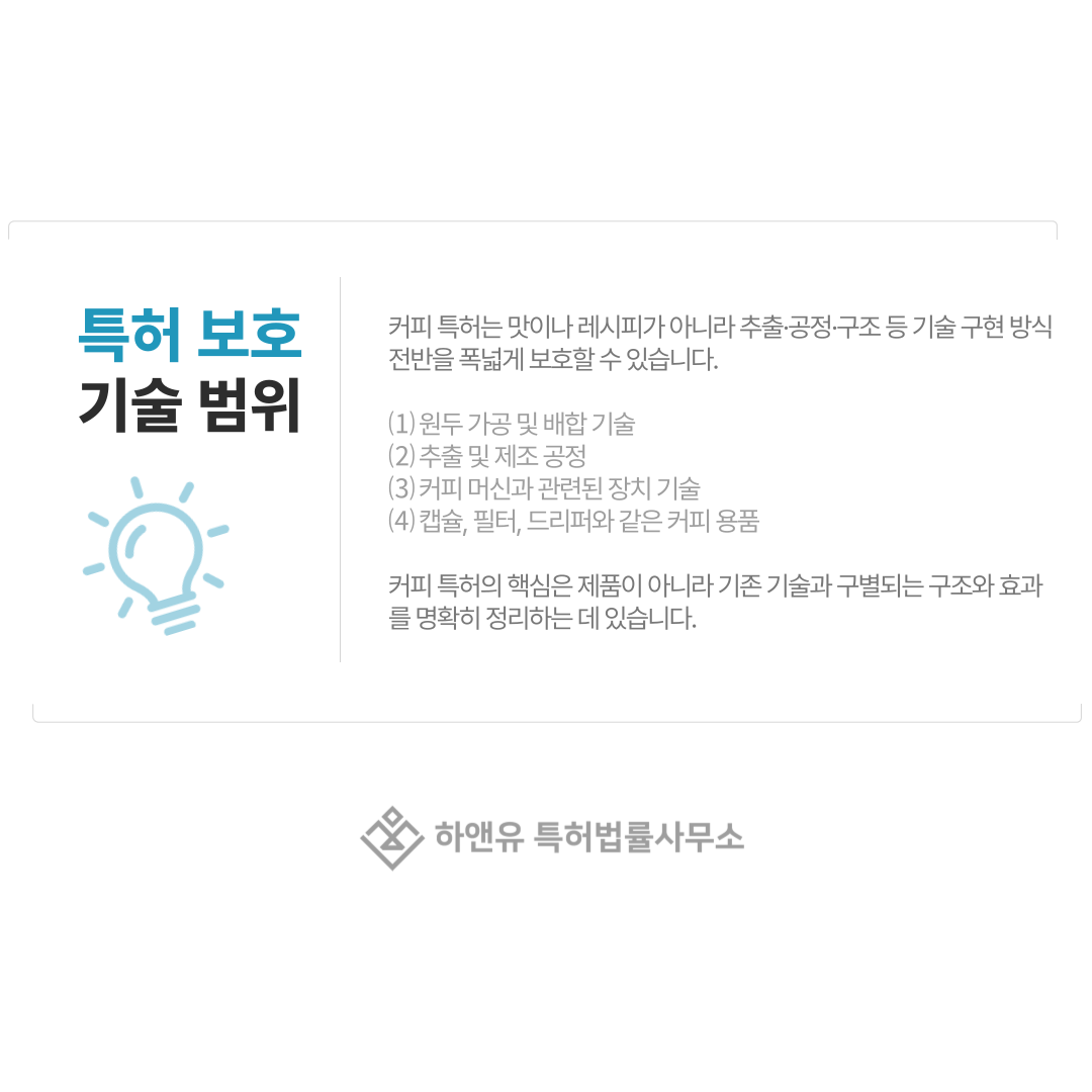 하앤유특허법률사무소는 커피 기술을 레시피가 아닌 기술 구조로 분석해 온 경험을 바탕으로,