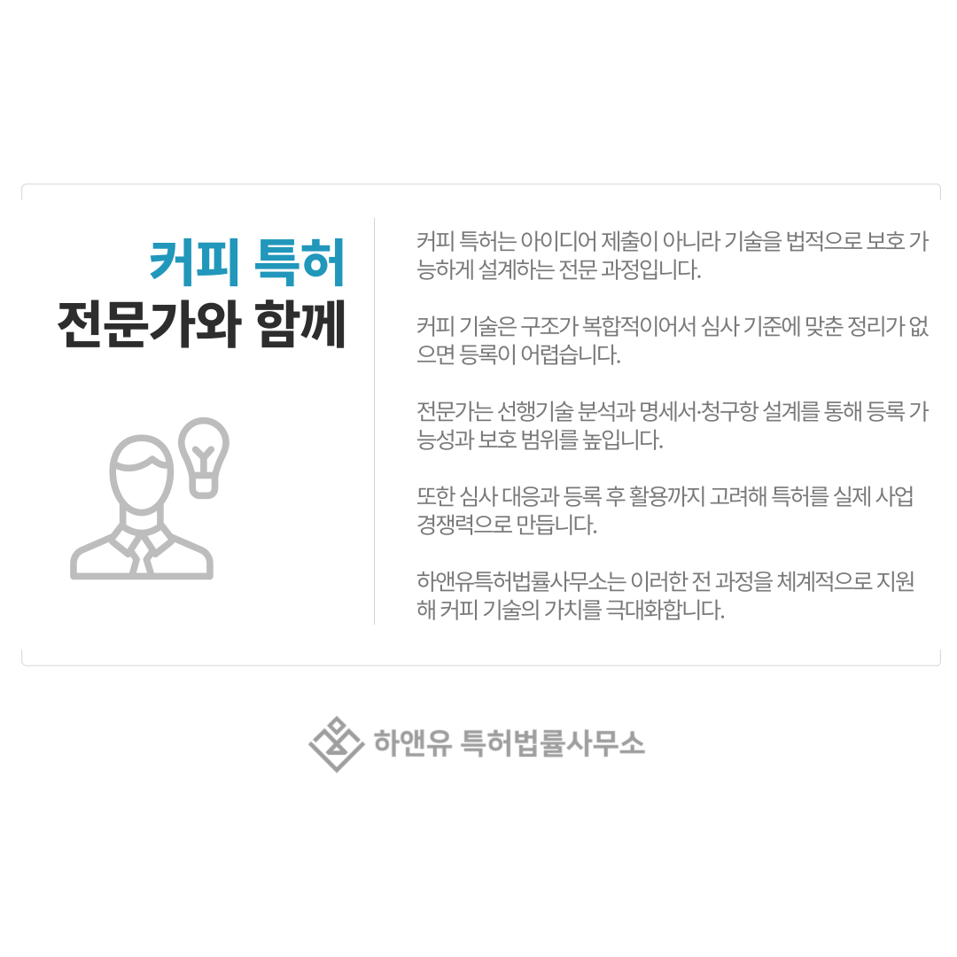 그래서 커피 특허는 처음부터 전문가와 함께 준비하는 것이 매우 중요합니다.