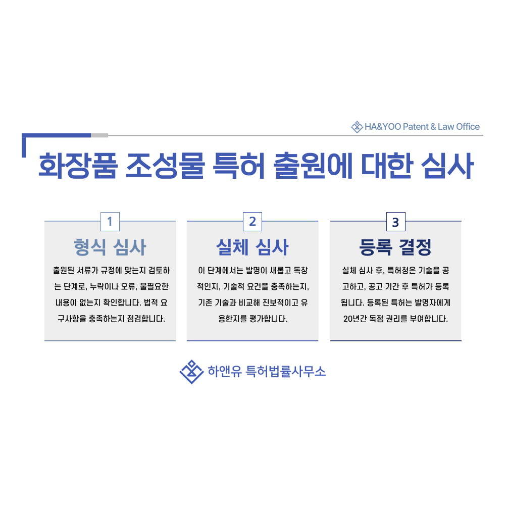 단순히 성분을 혼합하는 수준을 넘어, 피부 효능을 높이거나 사용 편의성을 개선하는 기술적 차별성이 있을 때 발명으로 인정됩니다.