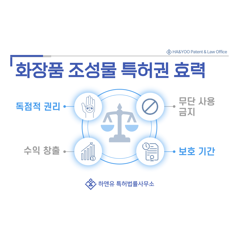 이는 동일하거나 유사한 조성물 배합 방식이나 용기 구조를 타인이 임의로 활용하지 못하도록 보장하는 강력한 권리입니다.