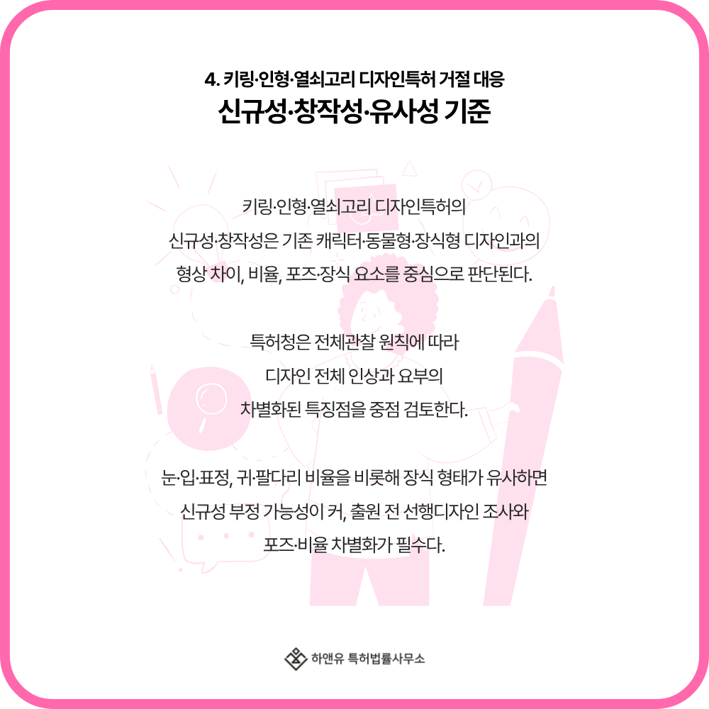 4. 키링·인형·열쇠고리 디자인특허 거절 대응|신규성·창작성·유사성 기준