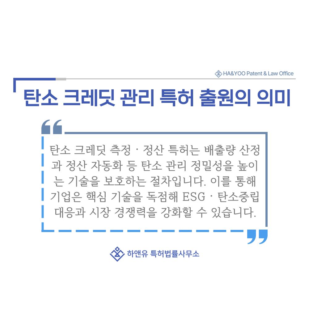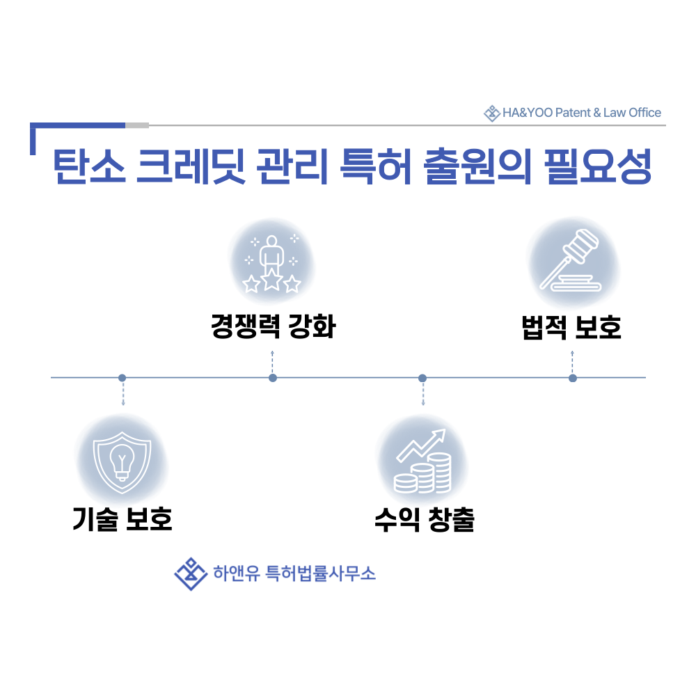 탄소 시장처럼 표준화 경쟁이 치열한 분야에서는 특허가 가장 강력한 법적 방패 역할을 수행합니다.