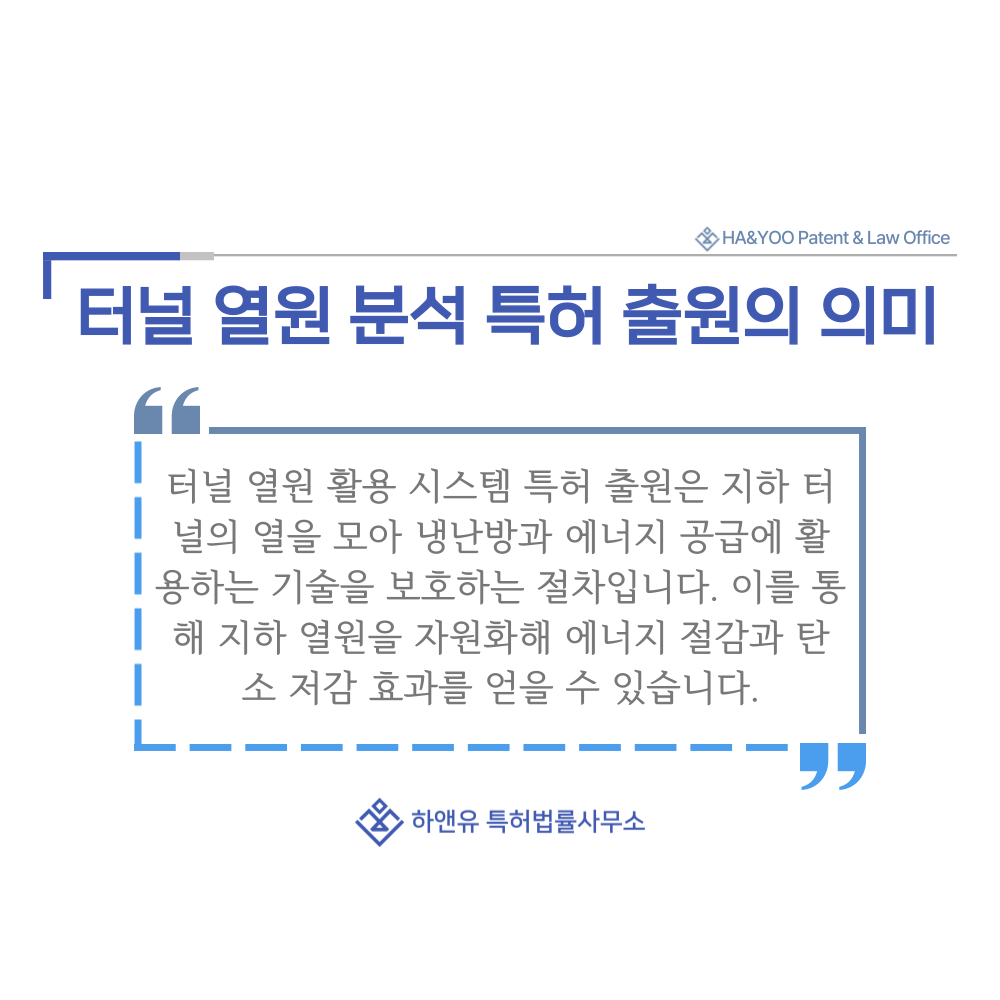 #터널열원분석 #터널열원활용시스템 #태양광검사 #EL #IV #특허 #특허출원 #특허등록 #특허권 #하앤유 #특허변리사 #PatentRegistration #PatentApplication