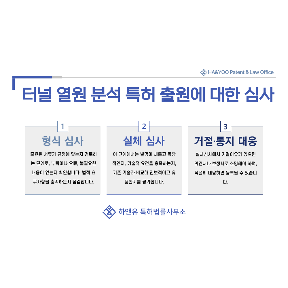 형식심사를 통과하면 본격적으로 기술 내용을 검토하는 실체심사가 진행됩니다. 이 과정에서는 발명이 기존 기술과 비교해 새로운지(신규성), 전문가가 쉽게 생각하기 어려운 창의적 요소가 있는지(진보성), 그리고 실제 산업 현장에서 적용 가능한지(산업적 이용 가능성)를 평가합니다. 터널 내부 열원의 수집과 활용 방법이 얼마나 독창적이고 효과적인지가 핵심 심사 기준이 됩니다.