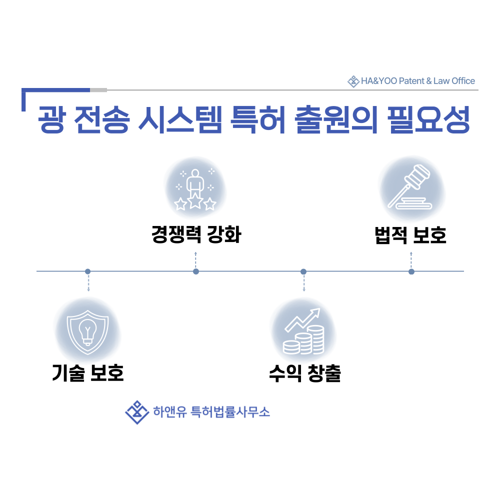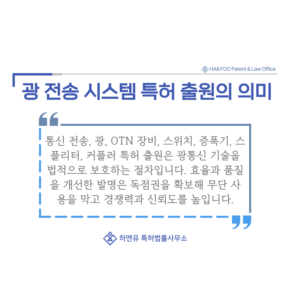 특허를 출원하면 발명자는 해당 광통신 기술에 대한 독점적 권리를 확보해 경쟁사의 무단 사용을 막을 수 있습니다.
