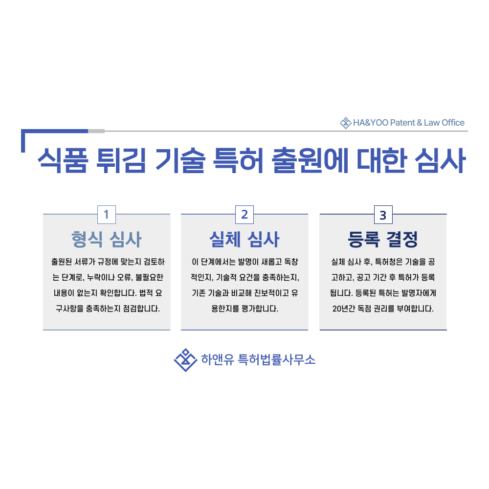 즉, 등록은 튀김 기술이 법적으로 보호되는 완성 단계이며, 기업의 기술 자산으로 공식 인정받는 절차입니다.