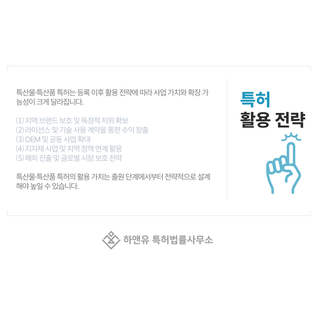 특산물·특산품 특허는 등록 자체가 목적이 아니라, 등록 이후 어떻게 활용하느냐에 따라 사업 가치가 크게 달라집니다.