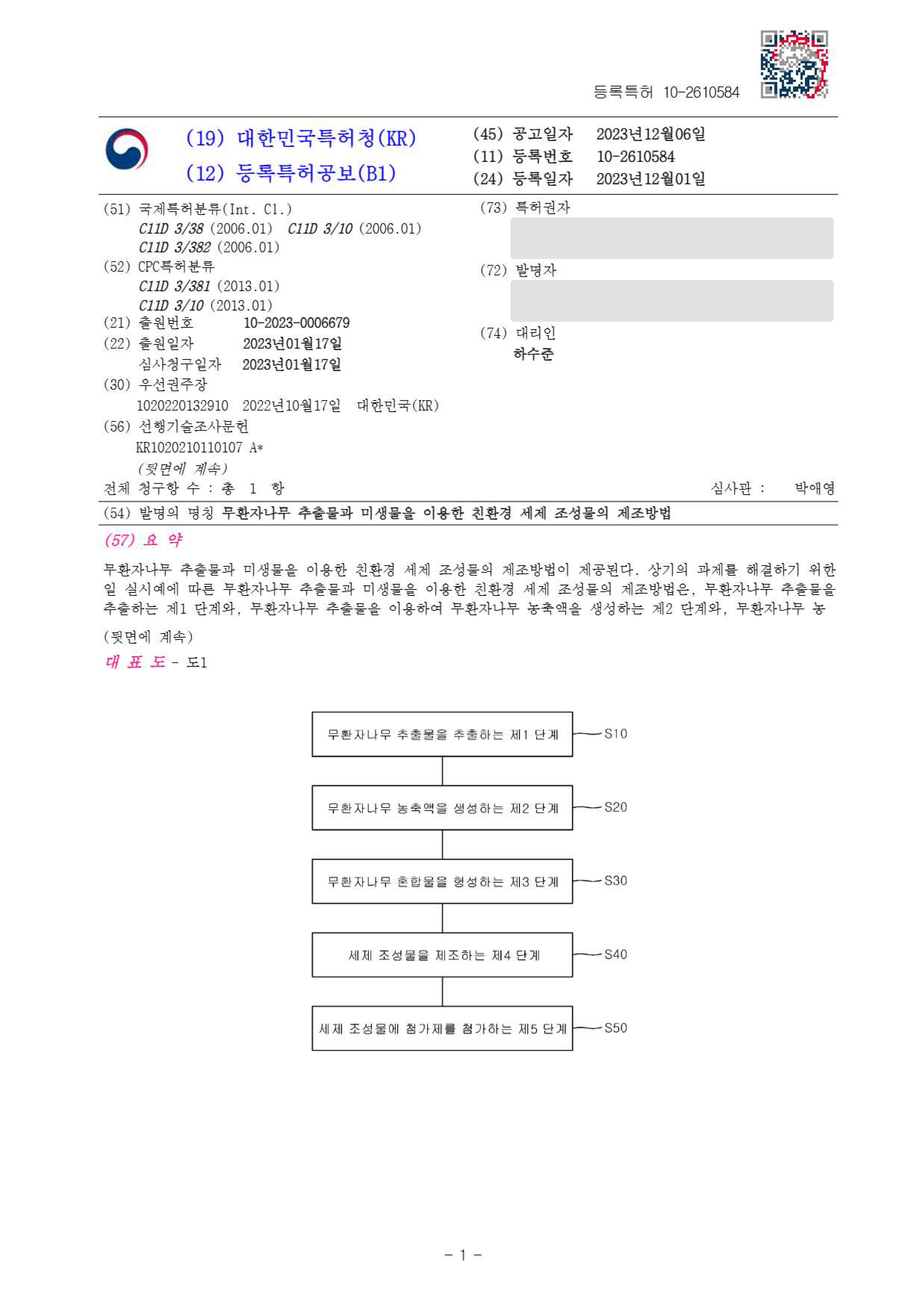 하앤유특허법률사무소를 통해 출원 등록된 특산물·특산품 특허 등록사례입니다.