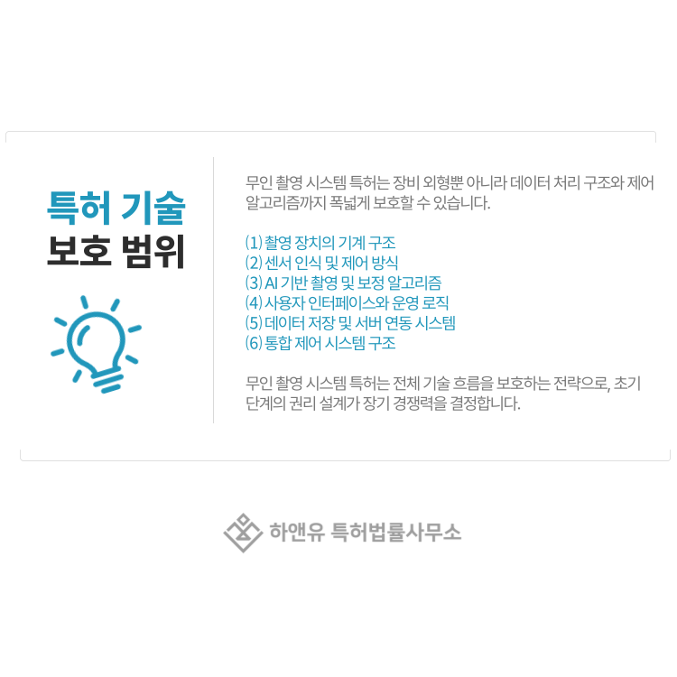 무인 촬영 시스템 특허로 보호할 수 있는 기술 범위는 생각보다 넓습니다.