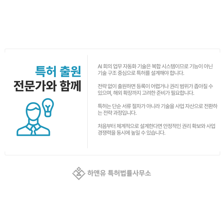 AI 회의 업무 자동화 특허, 처음부터 전략적으로 준비하신다면