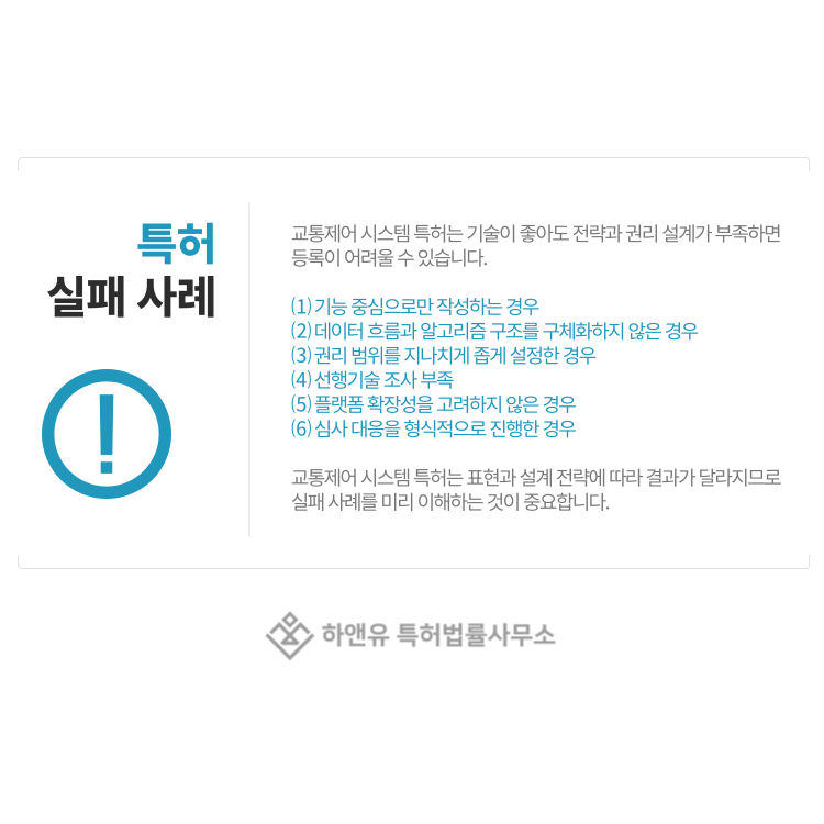 따라서 교통제어 시스템 특허는 전체 흐름을 구조적으로 정리하는 전략이 핵심입니다.