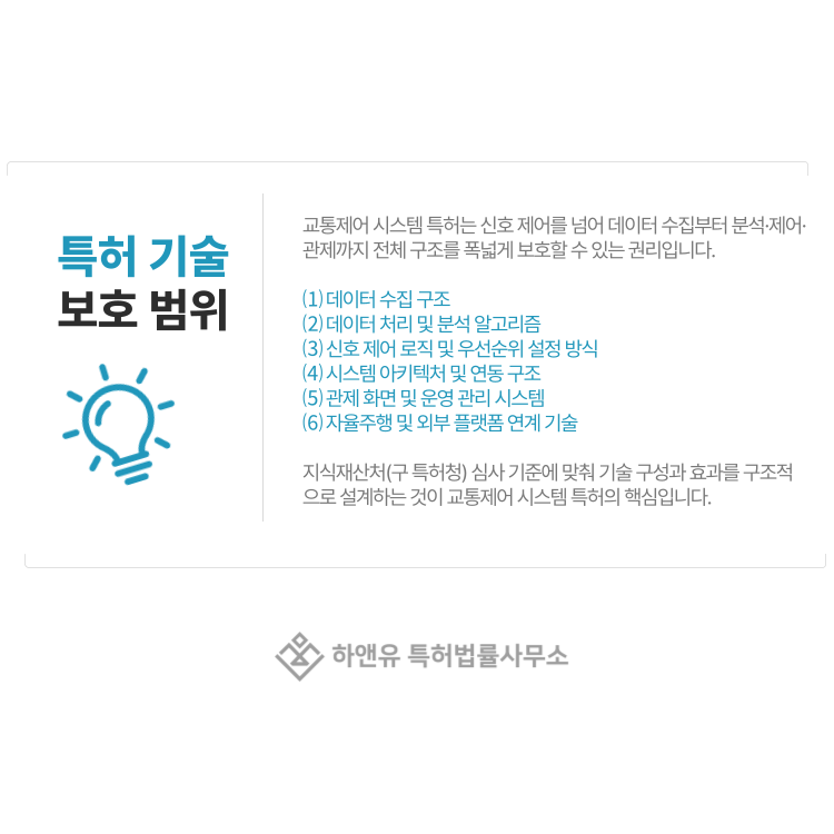교통제어 시스템 특허로 보호할 수 있는 기술 범위는 생각보다 매우 넓습니다.