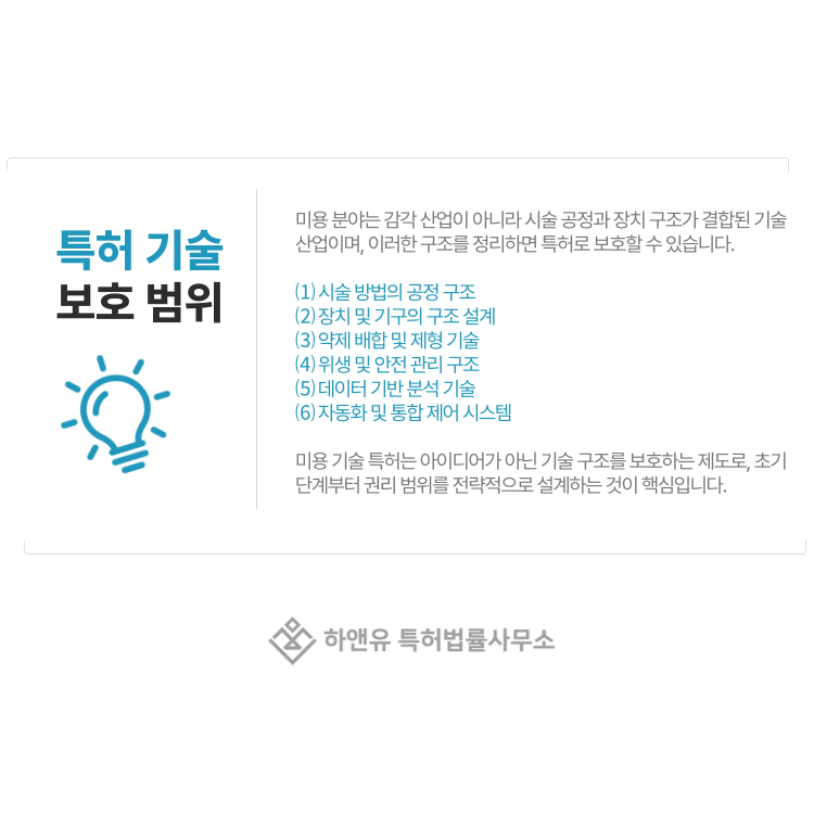미용 기술 특허는 아이디어를 보호하는 것이 아니라 기술 구조를 보호하는 제도입니다.