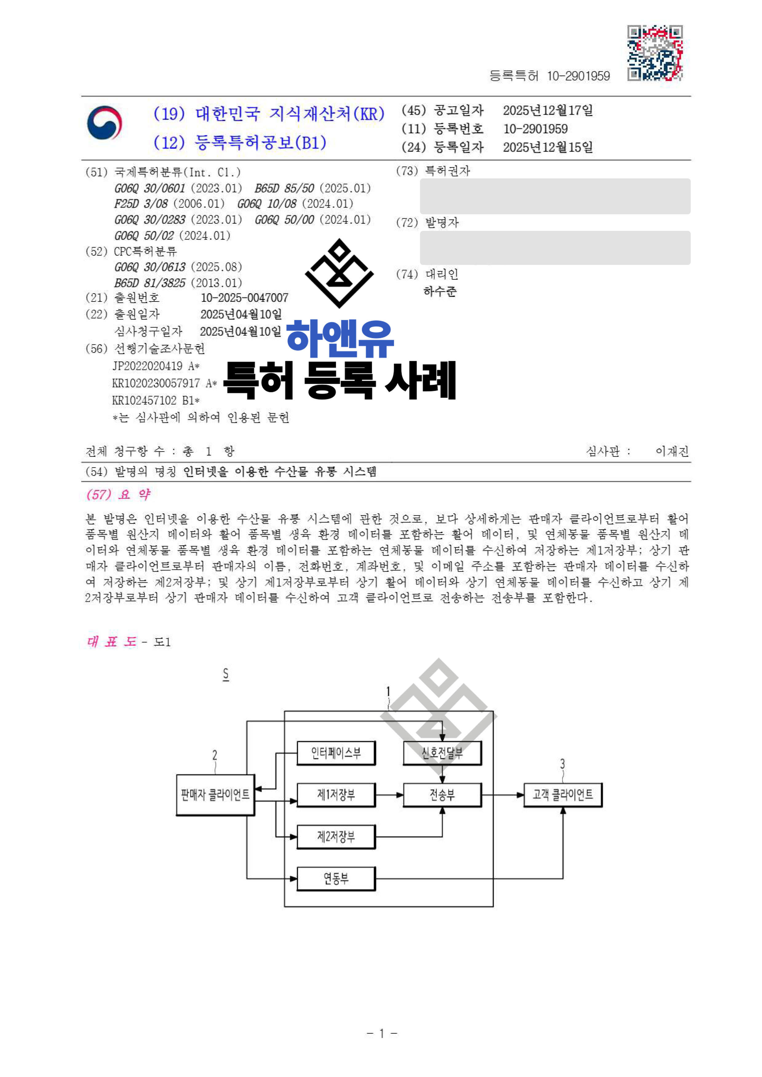 #수산물유통특허 #콜드체인특허 #스마트물류특허 #블록체인유통기술 #물류시스템특허 #유통플랫폼특허 #특허출원 #특허등록 #특허권 #특허등록사례 #PatentRegistration #PatentApplication #특허사무소 #특허법률사무소 #하앤유특허법률사무소