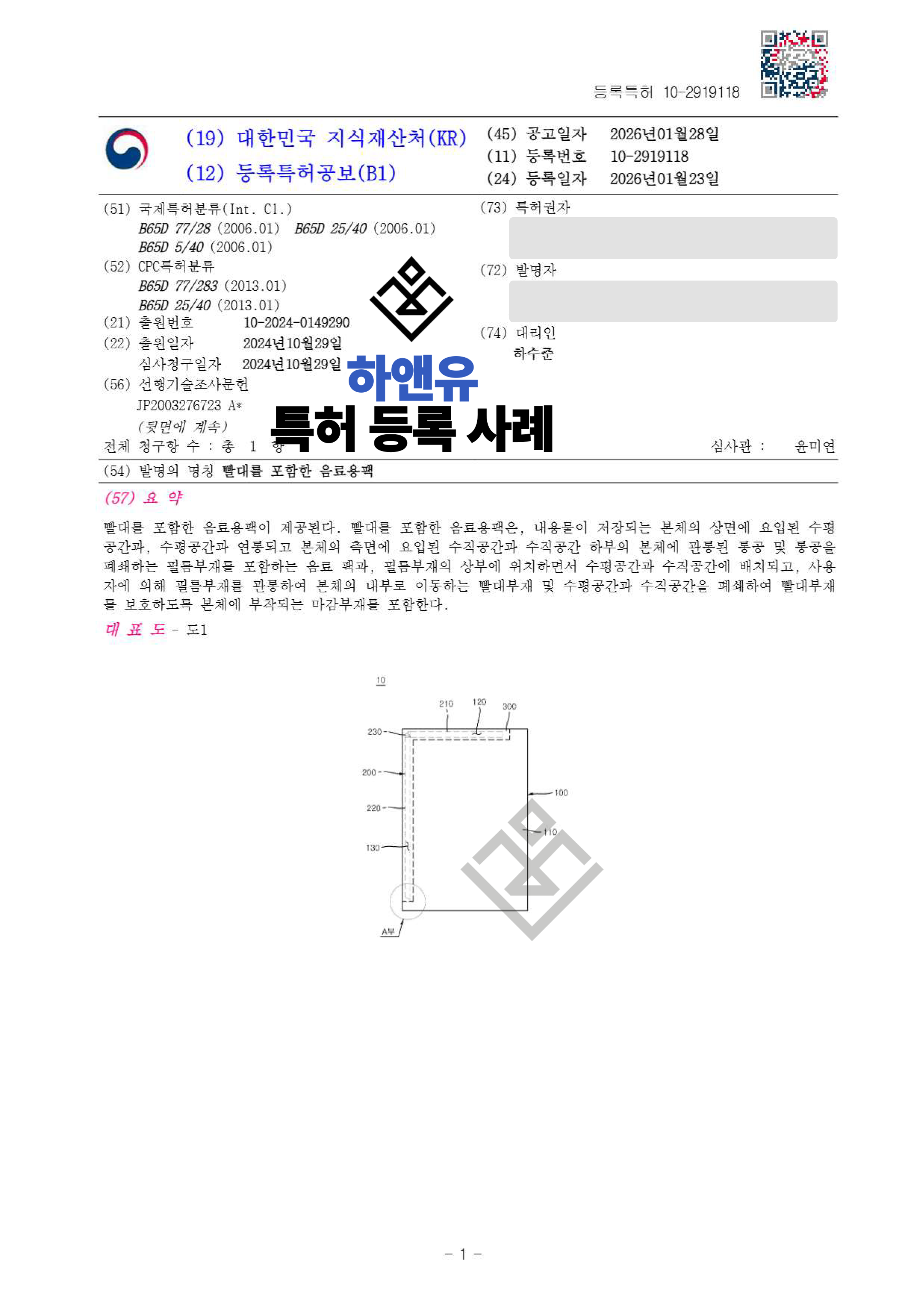 하앤유특허법률사무소는 식음료 용기 기술을 포함한 다양한 제품 특허를 전략적으로 다루고 있습니다.