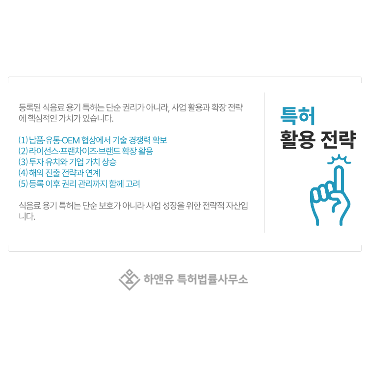 결국 식음료 용기 특허는 보호 수단이 아니라 성장 도구입니다.