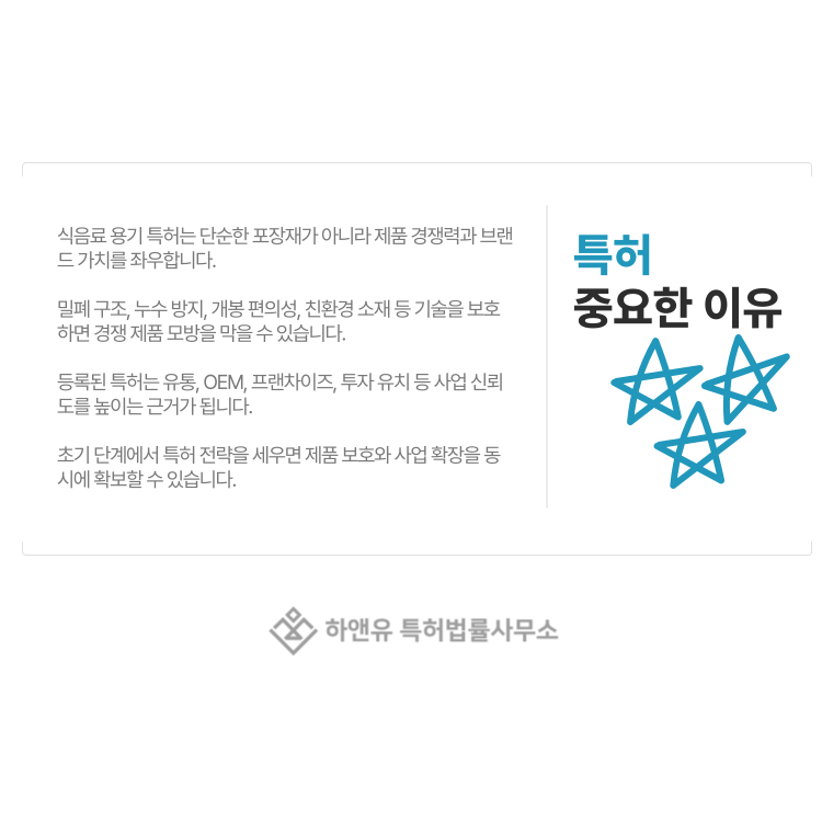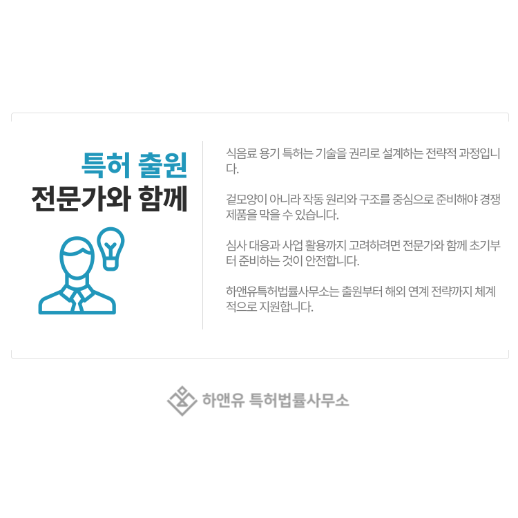 그래서 식음료 용기 특허는 처음부터 전문가와 함께 준비하는 것이 가장 안전합니다.