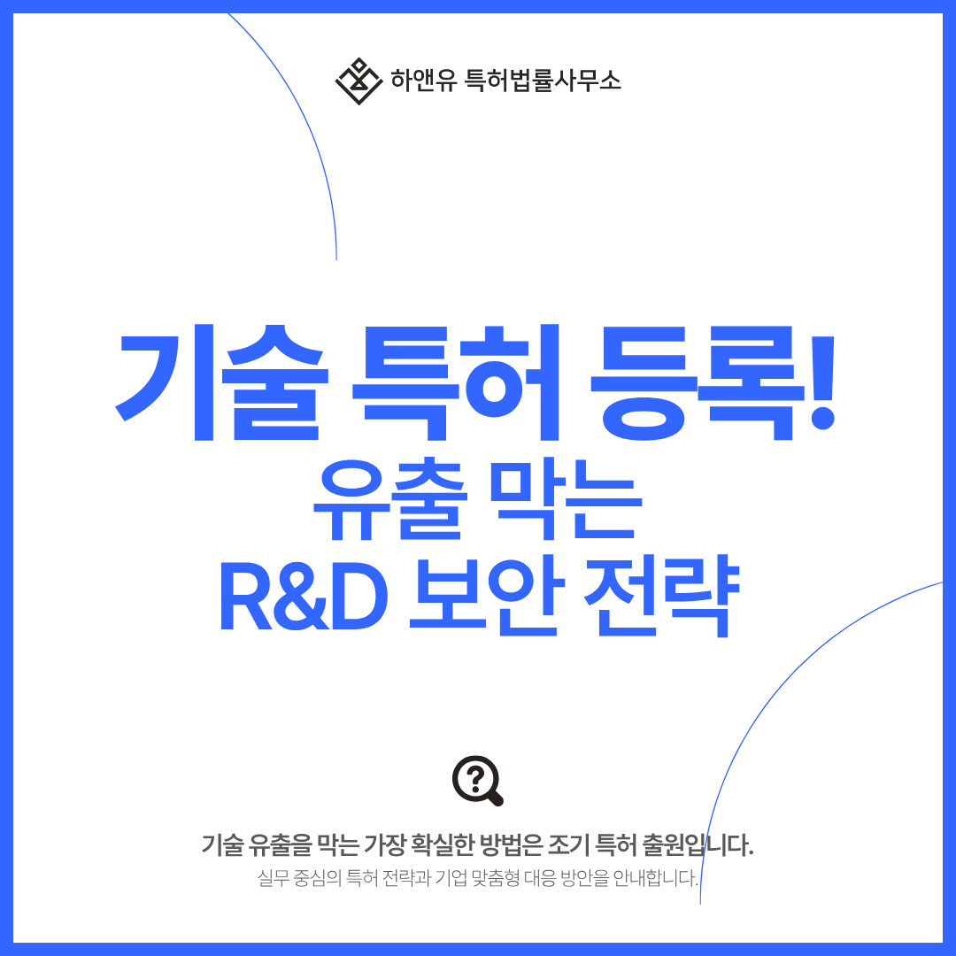 #특허출원 #특허등록 #기술유출방지 #R&D보안 #기술보호 #지식재산권 #특허명세서 #선행기술조사 #기업보안 #하앤유특허법률사무소