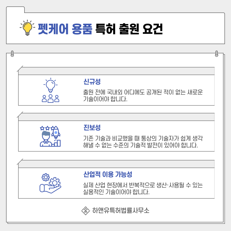 3. 펫 위생용품, 펫 배변 케어, 펫 보충제, 펫 매너용품, 그리밍 툴 특허 출원 및 등록 요건