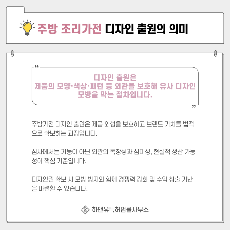 특히 주방가전은 유사 제품이 많아 미세한 차이만으로는 등록이 어려울 수 있습니다.