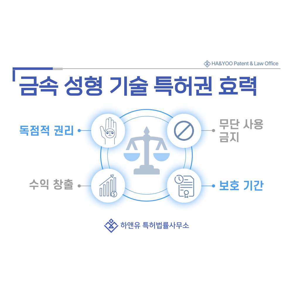 타인이 허가 없이 유사한 금속 성형 기술을 사용하거나 장비를 제작할 경우 침해로 간주되어 법적 제재가 가능합니다.