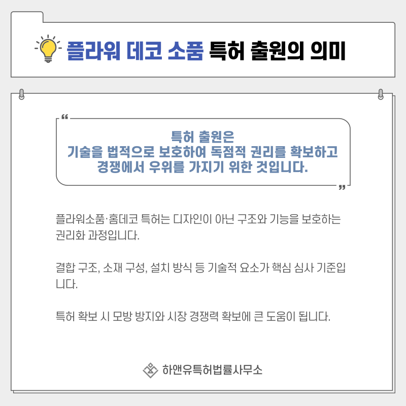 특히 플랜테리어와 홈데코 시장은 트렌드 변화가 빠르기 때문에 초기 단계에서 기술을 권리화하는 것이 매우 중요합니다.
