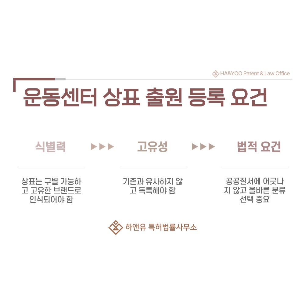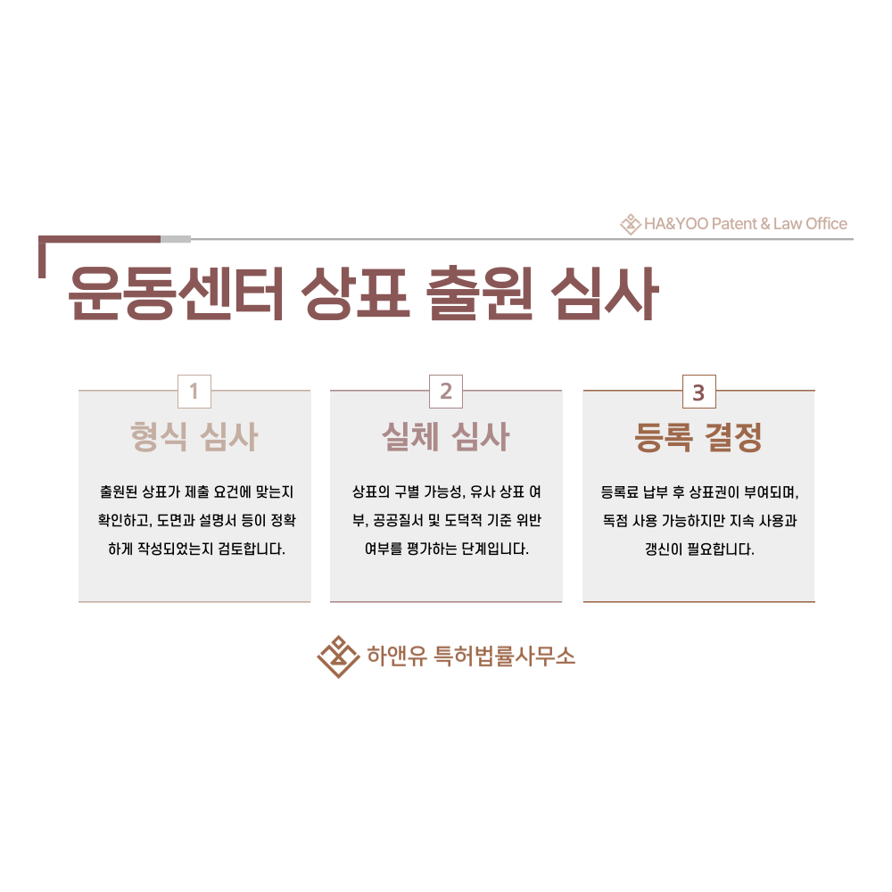 즉, 운동센터 상표 출원은 단순 등록이 아니라 브랜드 보호, 사업 확장, 장기적 신뢰 확보를 위한 핵심 기반입니다.