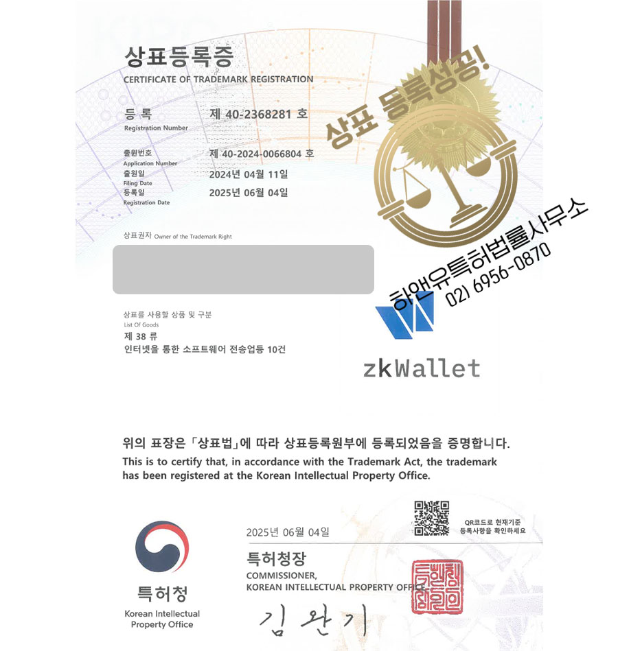 상표심사 통과 및 최종 등록에 성공하였습니다.