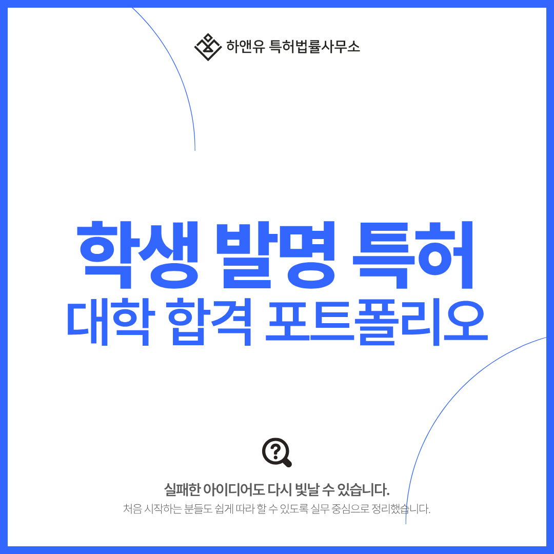 #학생발명 #발명특허 #특허출원 #특허등록 #포트폴리오 #창의성 #KIPRIS #발명대회 #공모전 #하앤유특허법률사무소