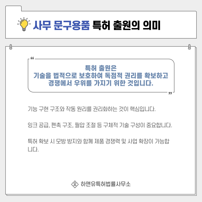 문구 산업처럼 제품 다양성이 높은 분야에서는 특허를 기반으로 라인업 확장과 브랜드 사업화를 동시에 추진할 수 있습니다.