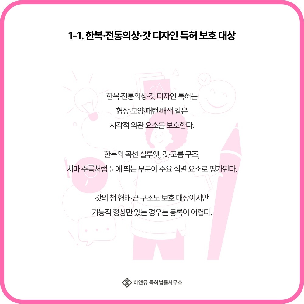 ■ 1-1. 한복·전통의상·갓 디자인 특허 보호 대상 — 의복·장신구 외관 중심