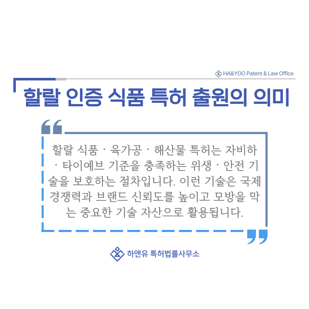 #할랄인증식품 #육가공 #해산물 #자비하 #타이예브 #특허 #특허출원 #특허등록 #특허권 #하앤유 #특허변리사 #PatentRegistration #PatentApplication