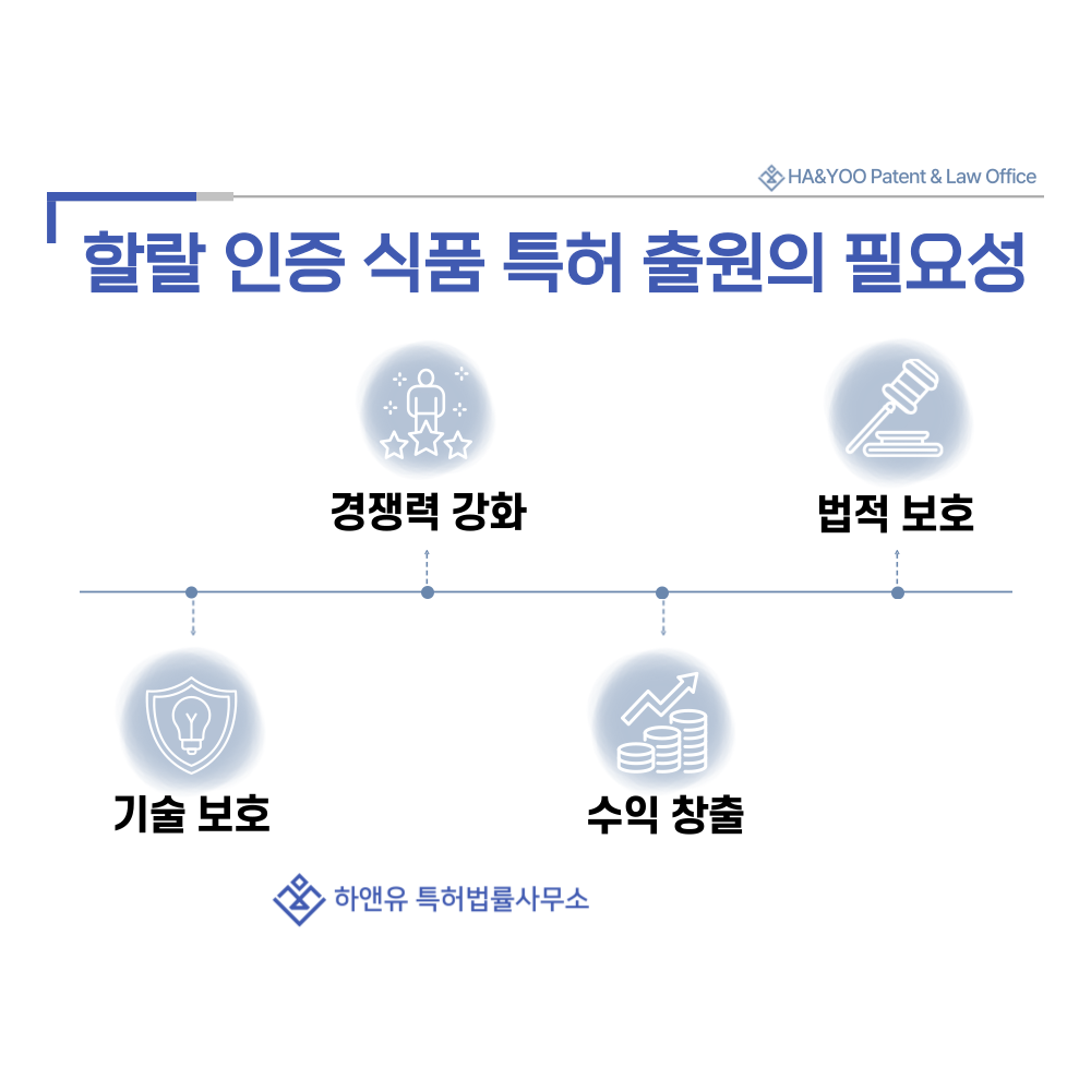 할랄 식품·육가공·해산물 분야에서 특허를 확보하면 기술 모방을 막고 브랜드 신뢰도를 높일 수 있습니다.
