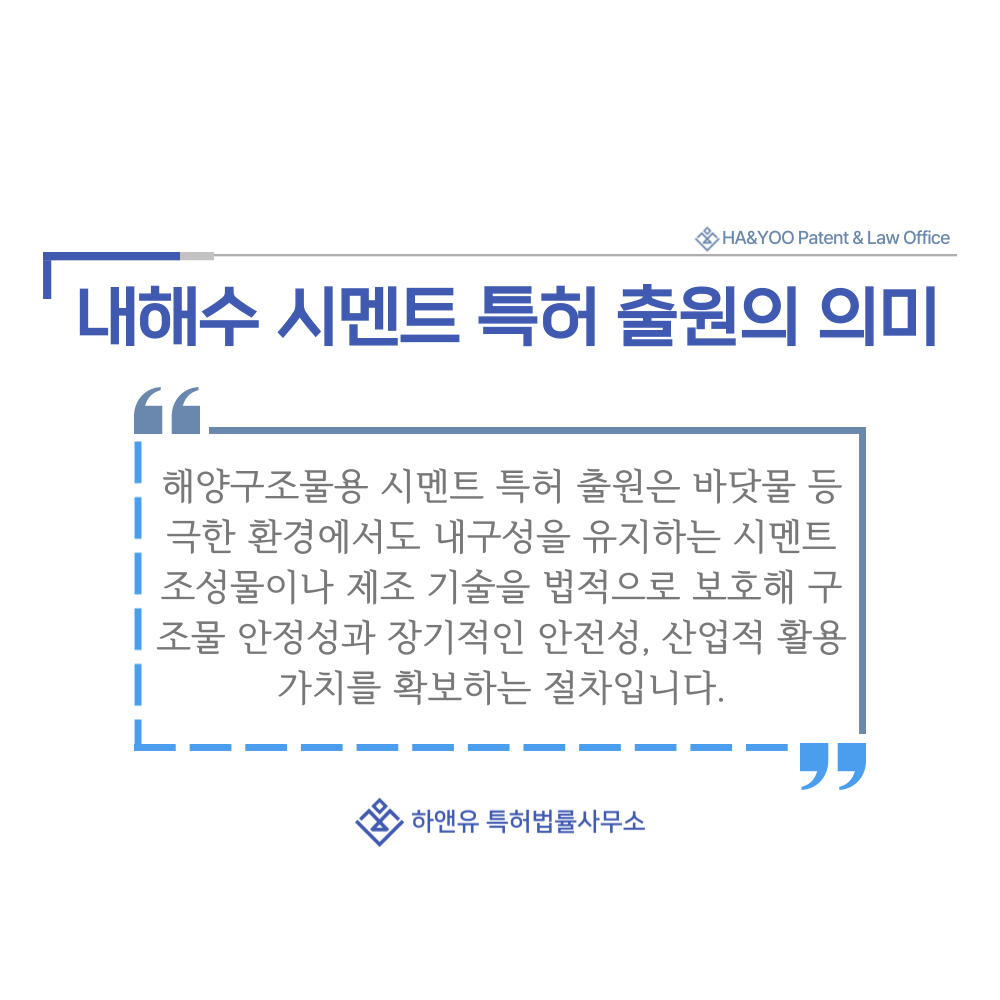 #해양구조물용시멘트 #내해수시멘트 #SRC #OPC #특허 #특허출원 #특허등록 #특허권 #하앤유 #특허변리사 #PatentRegistration #PatentApplication