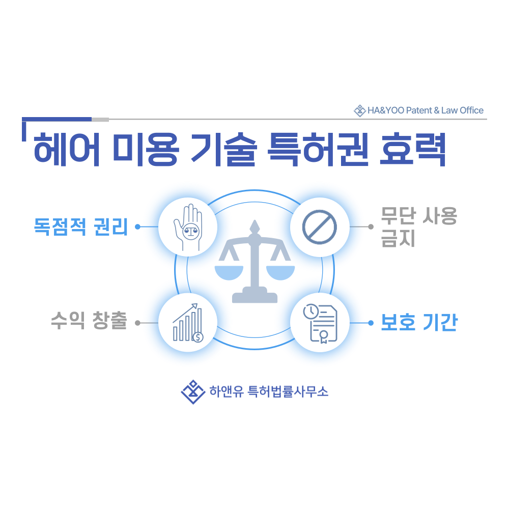 이때부터 헤어 미용, 커트, 펌, 염색, 트리트먼트 관련 해당 기술은 출원인이 독점적으로 사용할 수 있는 권리로 보호됩니다.