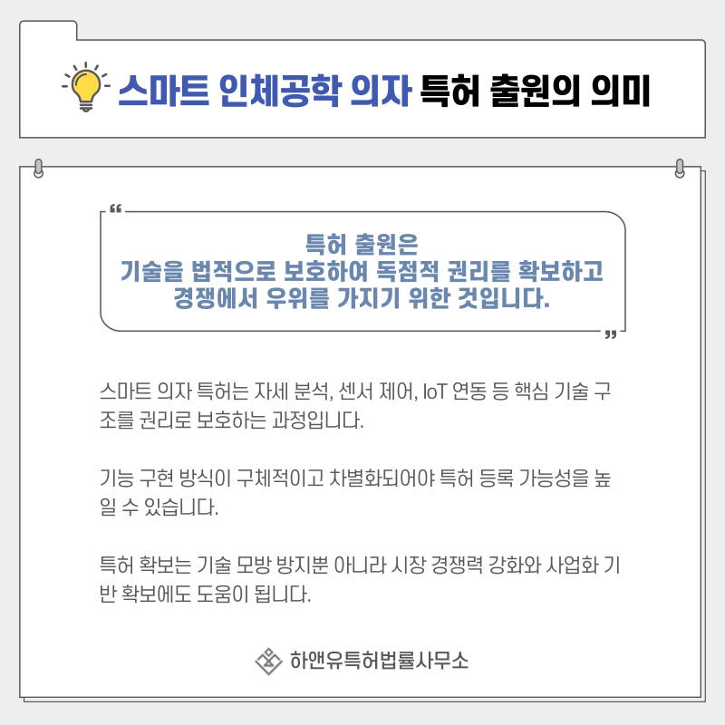스마트 의자 분야는 기능 유사 제품이 빠르게 등장할 수 있어 차별화 포인트를 기술 권리로 명확히 해두는 것이 중요합니다.