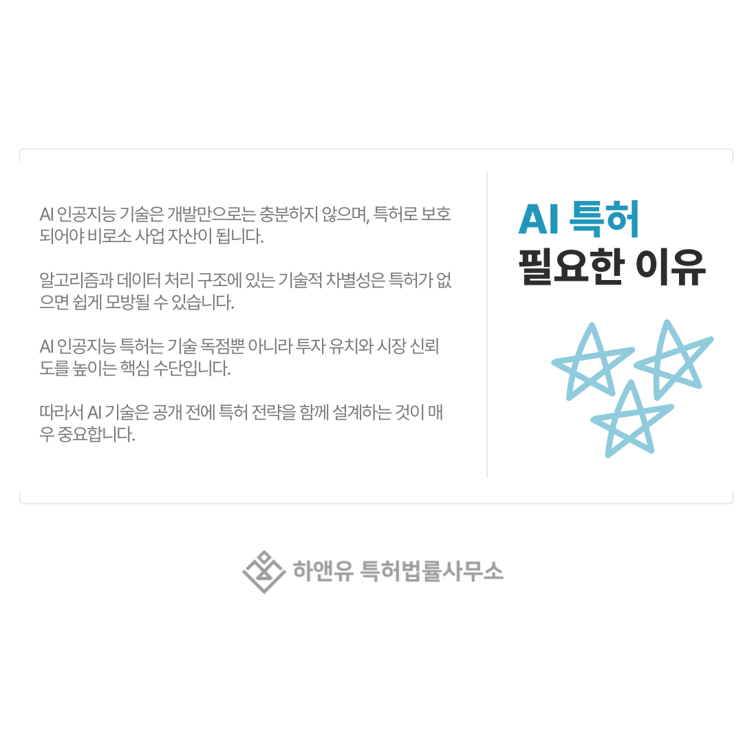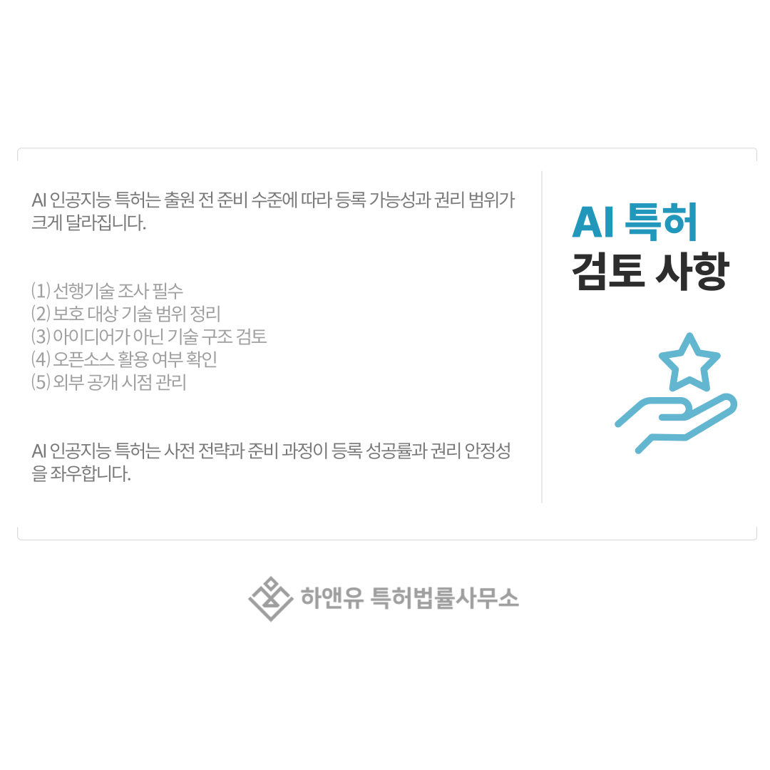 AI 분야는 공개 자료가 매우 많기 때문에 출원 전 선행기술 조사가 특히 중요합니다.