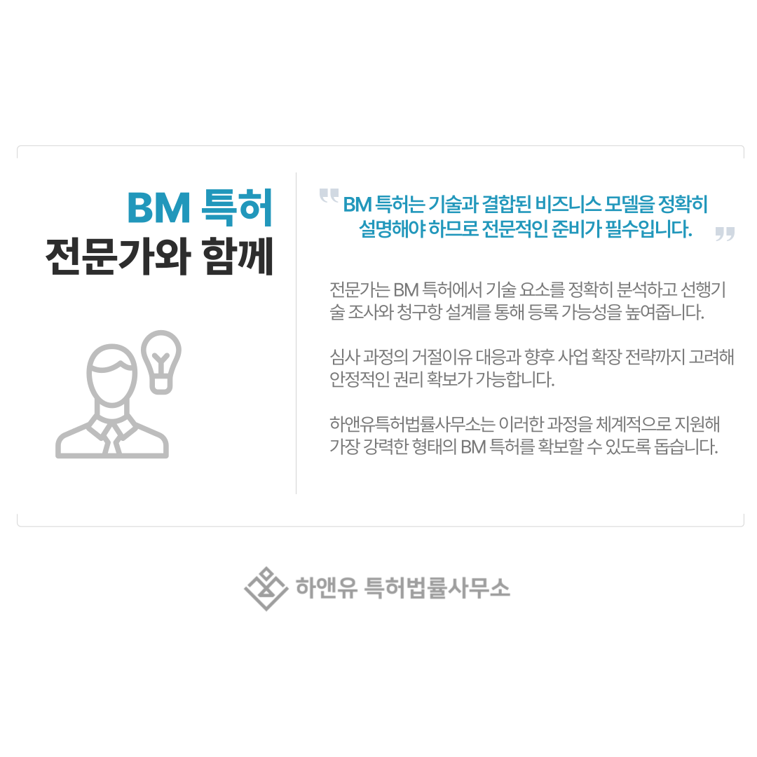 이런 이유로 BM 특허는 처음부터 전문가와 함께하는 것이 가장 효율적이고 안전한 선택입니다.