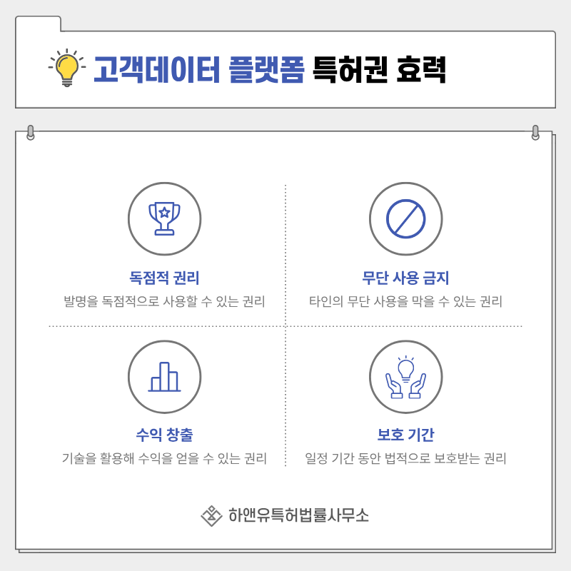 CRM, 고객데이터 관리, CX플랫폼 특허권을 취득하면 해당 기술을 독점적으로 사용할 수 있는 권리가 부여됩니다.