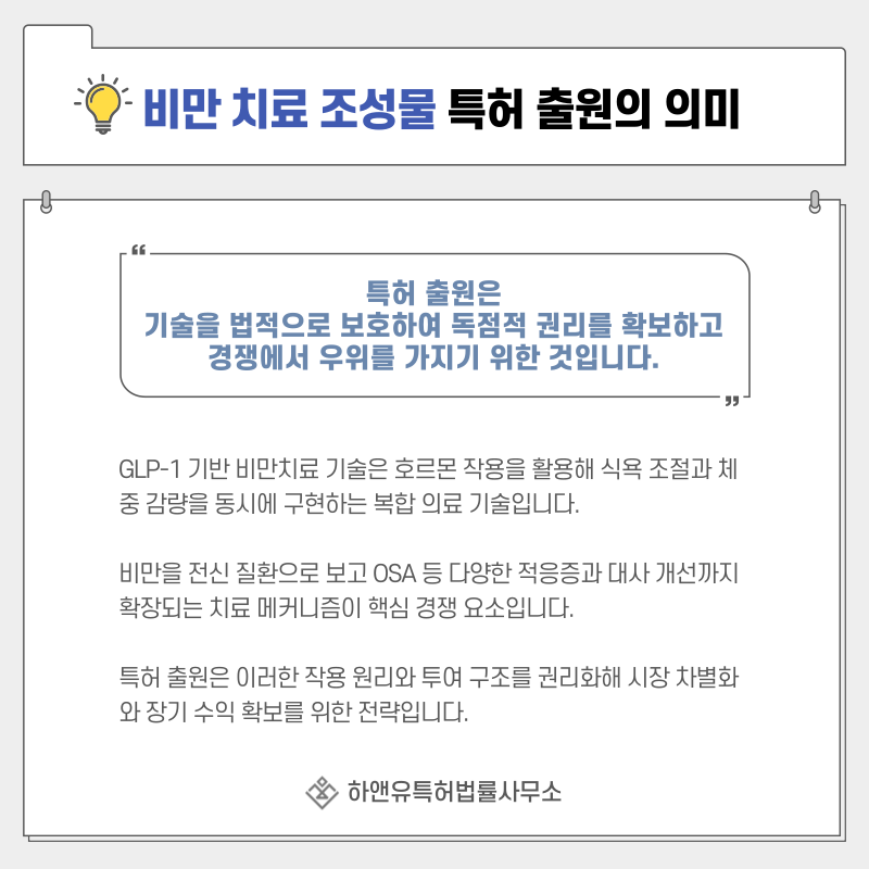 #GLP1수용체작용제특허 #OSA적응증확장특허 #주1회비만치료제특허 #다회용펜제형특허 #복합대사질환치료특허 #비만치료제특허