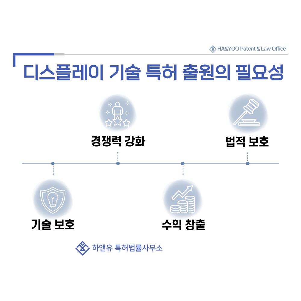 특허 출원을 통해 기업이나 연구자는 새로운 디스플레이 기술을 경쟁사로부터 지킬 수 있습니다.