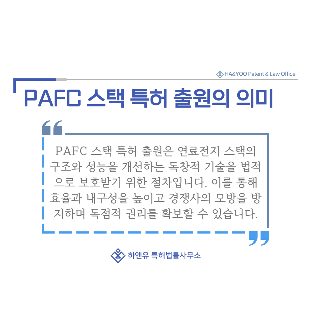 즉, PAFC 스택 특허 출원은 단순히 연료전지 스택을 제작하는 것이 아니라, 효율과 내구성을 높인 구조와 설계를 법적으로 보호받기 위한 절차라고 이해할 수 있습니다.