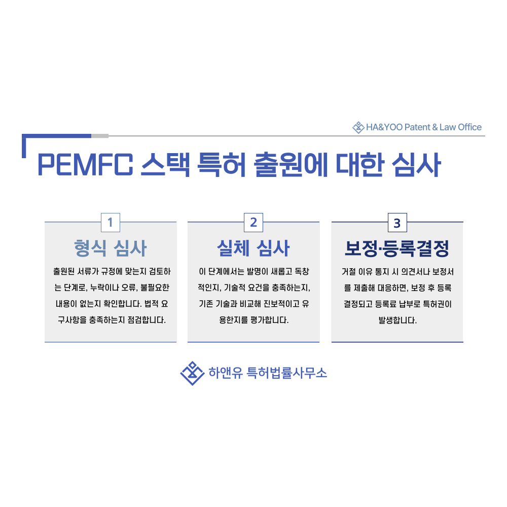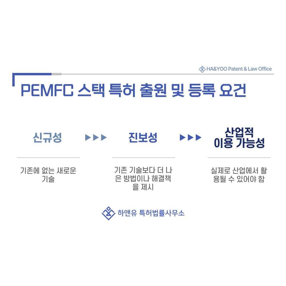 즉, PEMFC 스택 발명이 신규성, 진보성, 산업적 이용 가능성을 충족하는지를 검토합니다.