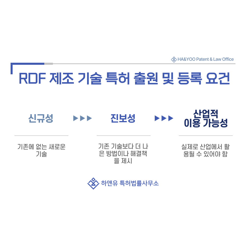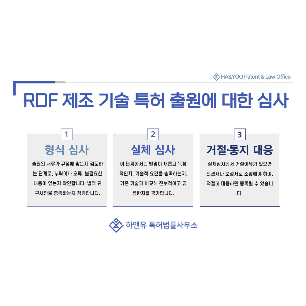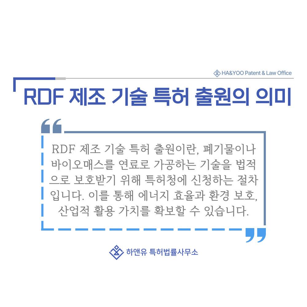 이와 같이 RDF 제조 기술 특허 출원은 단순한 폐기물 재활용을 넘어, 에너지 효율을 높이고 환경 오염을 줄이는 동시에 산업적 활용 가치를 보호할 수 있는 중요한 법적 절차입니다.