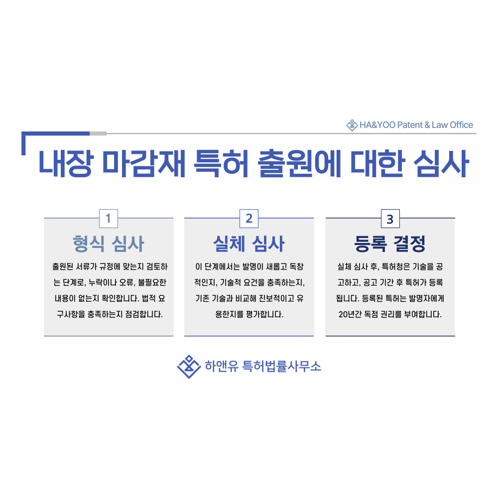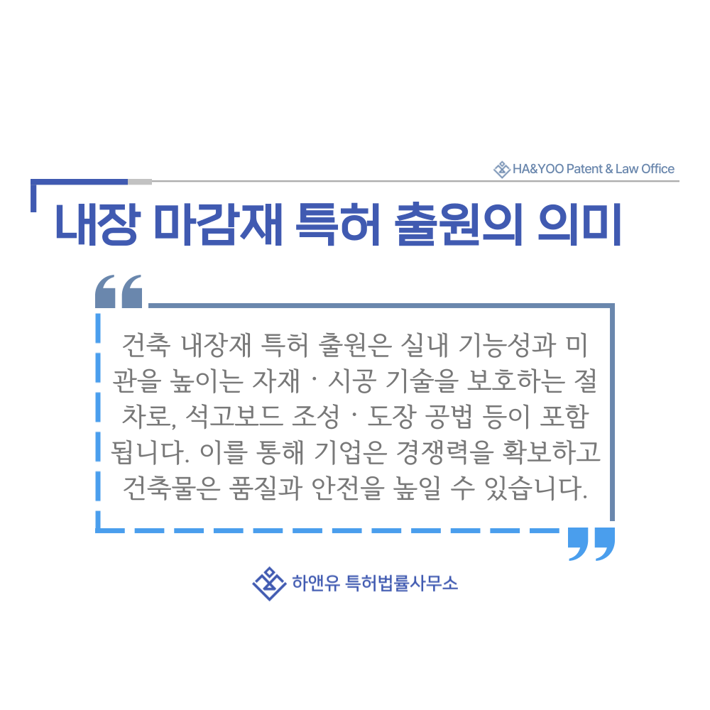 #내장마감재 #건축내장 #석고보드 #도장 #벽지 #패브릭 #필름 #천장재 #특허 #특허출원 #특허등록 #특허권 #하앤유 #특허변리사 #PatentRegistration #PatentApplication