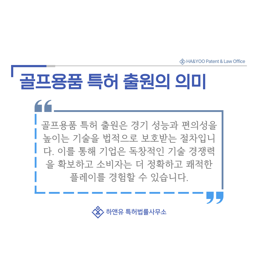 특허 출원을 통해 기업은 독창적인 골프 장비와 의류 기술을 보호받고, 시장에서 브랜드 경쟁력을 강화할 수 있습니다.